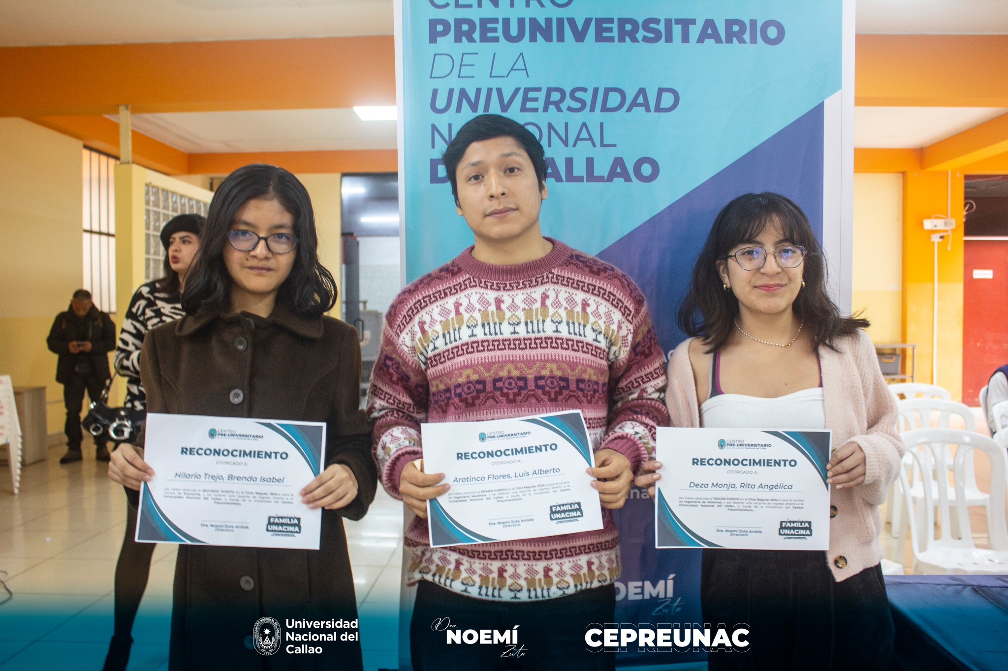 También tomó usa de la palabra la directora del Centro Preuniversitario de la UNAC, dra. Noemí Zuta Arriola, quien deseó los mejores éxitos a los ingresantes, los cuales iniciarán pronto sus clases universitarias.