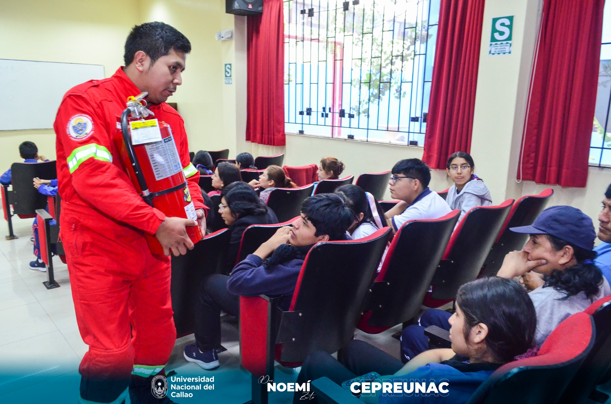 El día lunes 20 de mayo se realizó la capacitación de seguridad en el tema “Evacuación de sismo, prevención y uso de extintores” del Plan de seguridad, contingencias y plan de evacuación 2024 – 2025 del Centro Preuniversitario de la UNAC.